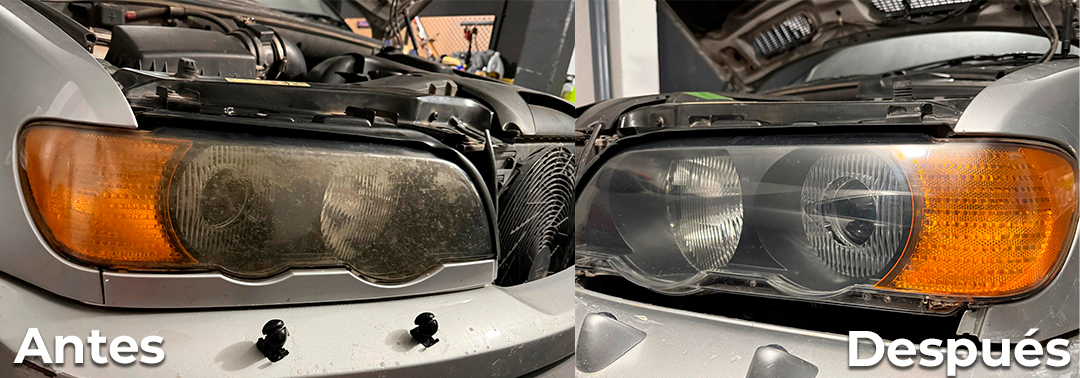 Verificamos que ambos faros estén completamente restaurados y brillantes.
